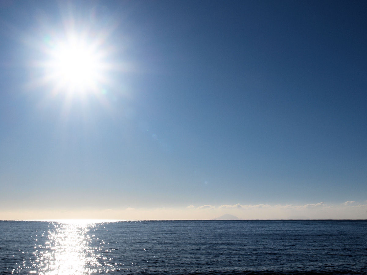 太陽が眩しいっ!よく見ると利島も見えます。