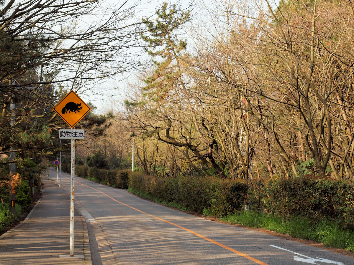 久々に観た(ぶらり旅は初?)たぬきの動物注意マークです。