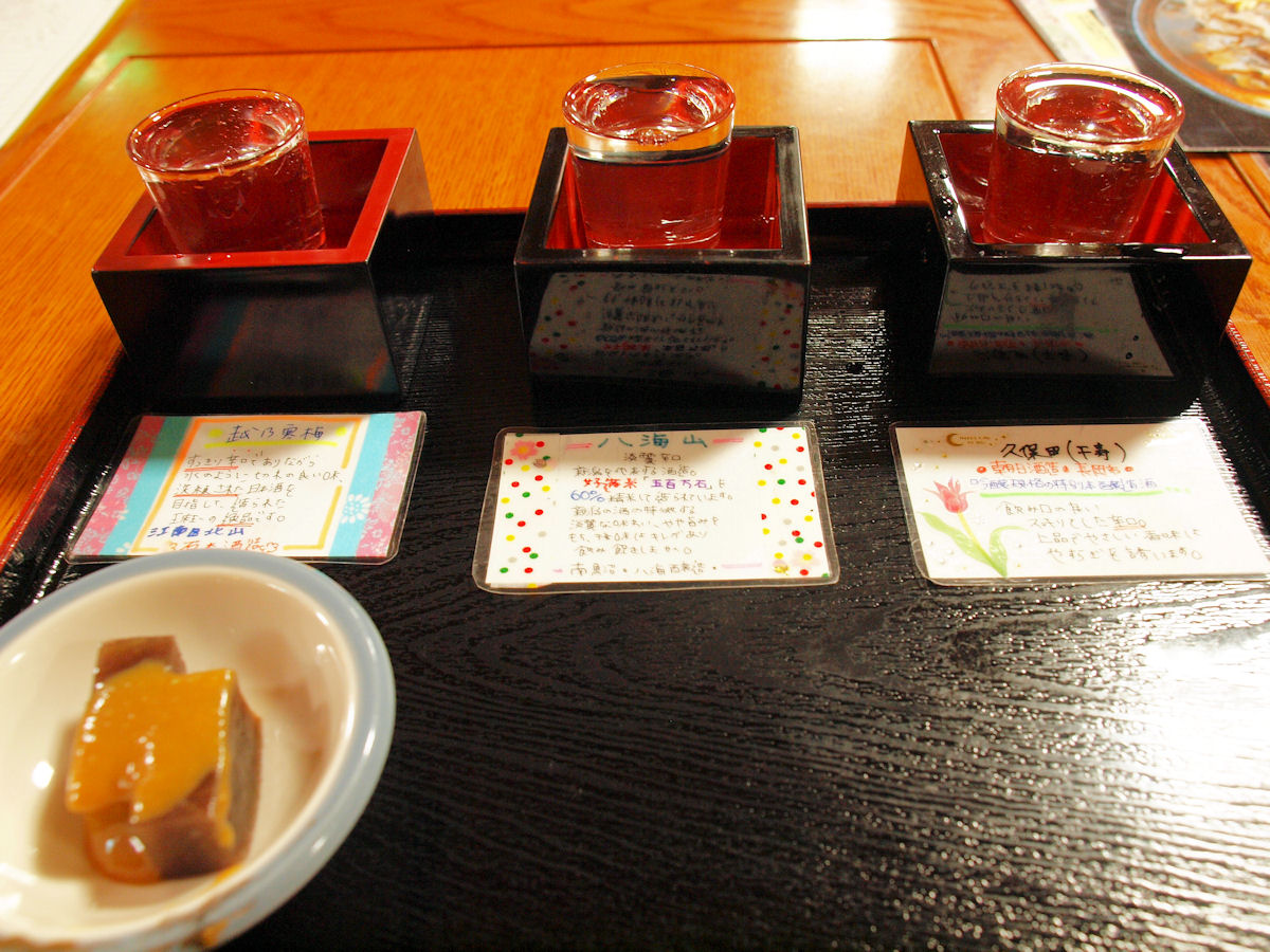 やはり新潟に来たので日本酒、飲み比べです。6種から選べるのですが、越乃寒梅、八海山、久保田をチョイス。私の口には越乃寒梅が最高に合いました。日本酒がこんなに美味しいものとは…。