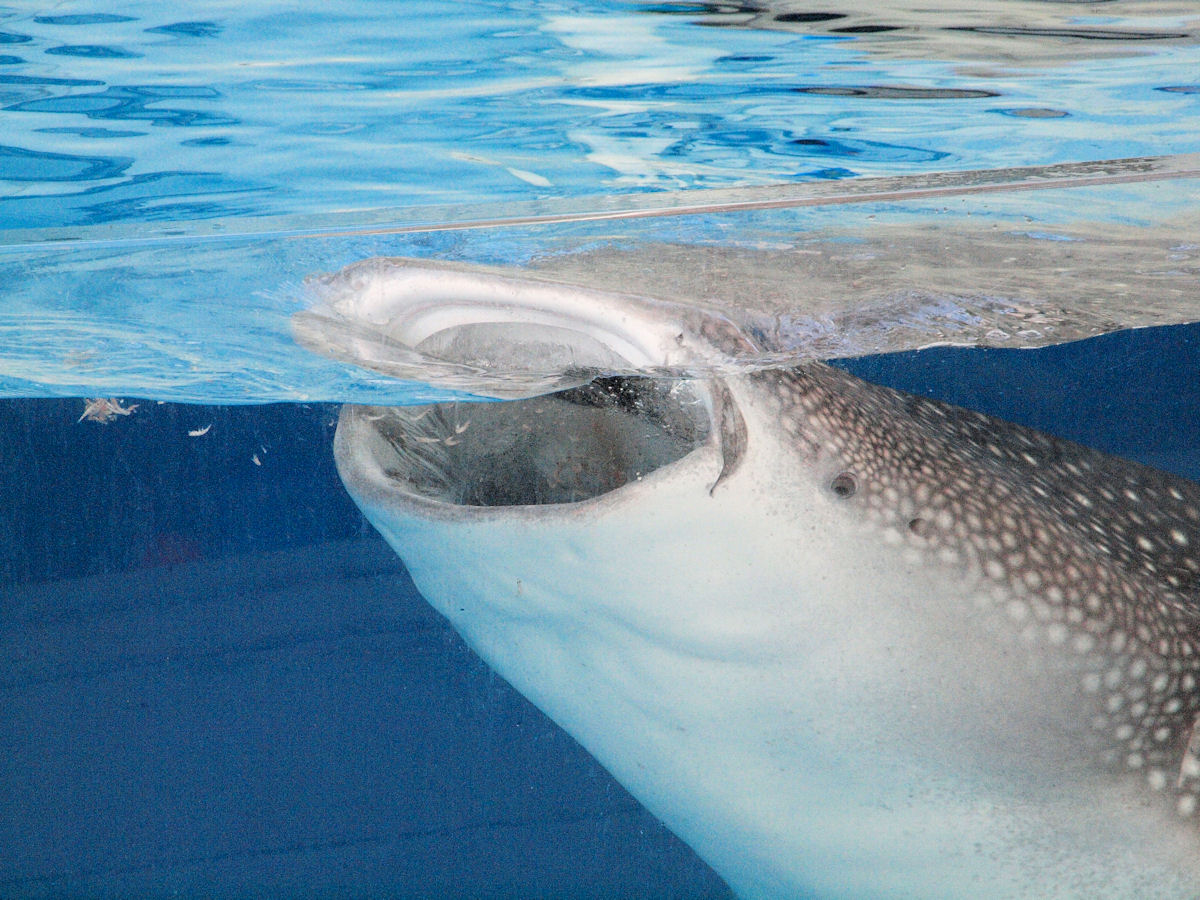 アンジー>海の中では、小さい魚はけっこうジンベイザメに群がるようです。大きい魚は警戒しちゃうそうなので、小さい魚の方が賢いのかな?