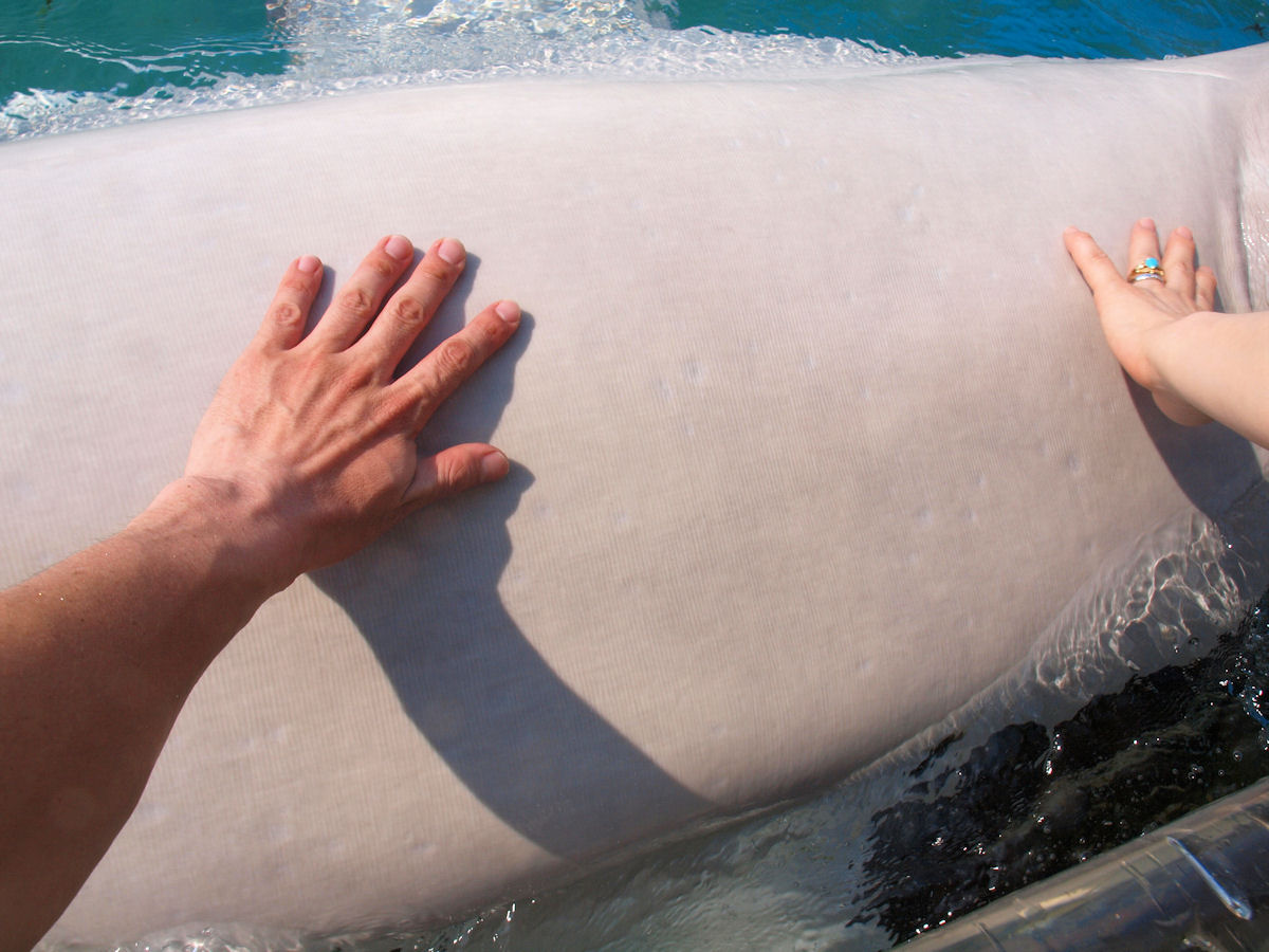 ベルーガのすりすりは見ているだけで癒されます。