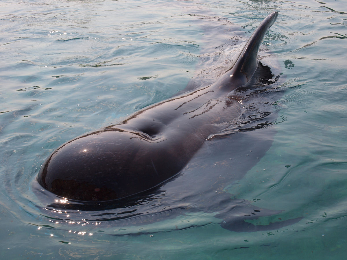 コビレゴンドウはまるで潜水艦ですね。いや、潜水艦がマネしたのかな。