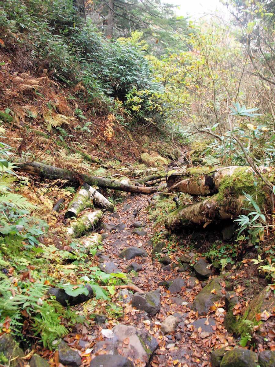 ゴツゴツした道を降ります。