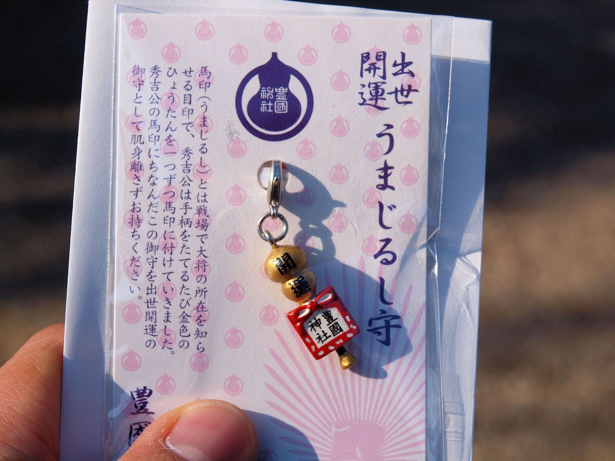 秀吉公が祀られている豊國神社があり、馬印のひょうたんのお守りを買いました。