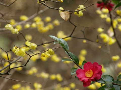 蝋梅と椿のコラボです。