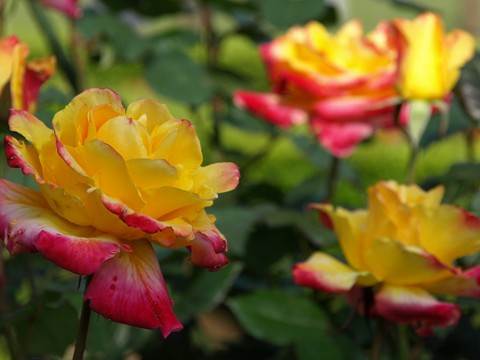 デザートピースです。赤色が花の中心からクリーム色(黄色?)に変化するタイプです。