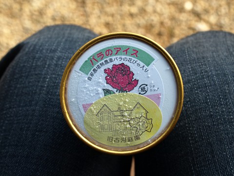 洋館と薔薇を見ながら食べるアイス、雰囲気がいいです。
