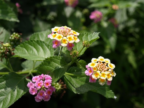 2段目はアサガオ??4段目はランタナ…昨年ハマりましたね、大好きな花です、別名が七変化…なるほどです。