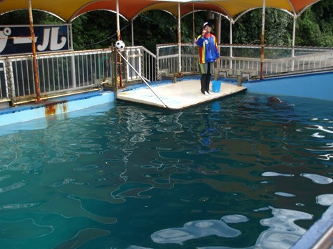 こちらのふれあいプールでショー・・・って二見よりも・・・近いっ!!!大丈夫なのか???