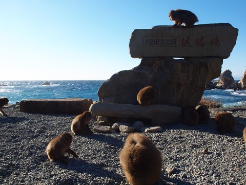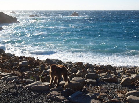海と猿…こんな色の海も凄いけど、猿をこの背景というのもすごいなぁ。