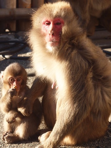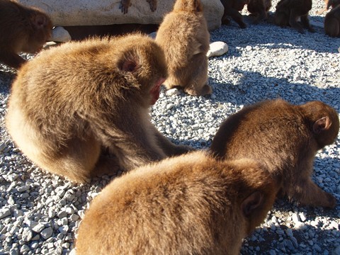 そして餌をあげられるのでさつまいもを購入、あげると奪い合います(汗)。特にビックリなのは子供に与えても母親が獲ってしまう…猿の世界は厳しい…。でも子供もしっかり端っこは握っていてお零れは食べてます。
