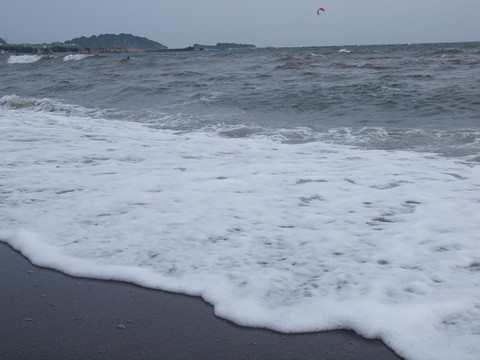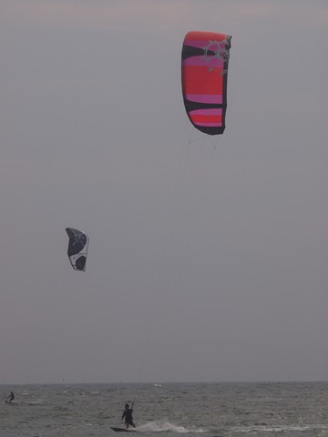 沖ではカイトボーディング、この日は風が強かったので面白そうでした。