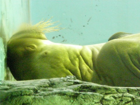 シルエットのような写真になりましたがセイウチです。アオウミガメと共に入り口付近にいます。このヒゲがトレードマークですね。八景島でも人気のセイウチ、やっぱりシーパラはセイウチなのか???