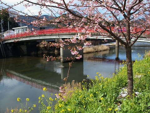 河津から河津桜です。写真は河津川下流2週間前は本会場よりも河口あたりが見頃でした。