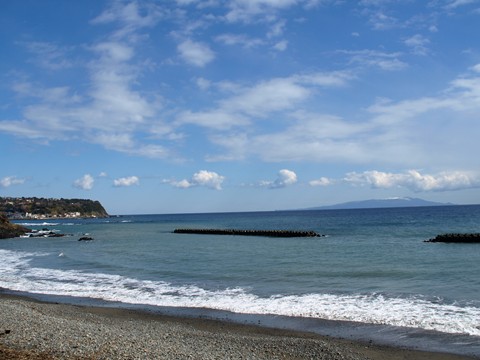 薄紅色から一転、青の世界綺麗でした。さすが下田に近い海です。
