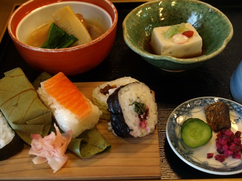 茶粥と柿の葉寿司両方を楽しめる八重桜(3,200円)です。いろいろ調べてこれを食べたかったんです。他にも吉野川の鮎に吉野葛の胡麻豆腐と葛餅…満足の料理です。
