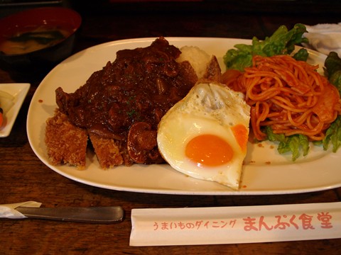 線路下のまんぷく食堂で、昭和のランチっぽいランチを食べました。ボリュームたっぷりでした。