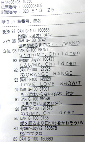 そして声出るかな~と思って歌ったのは『粉雪』っ!完全に季節を無視しています(笑)。この歌はやはり難しいなあと思いながらも声は出ました。