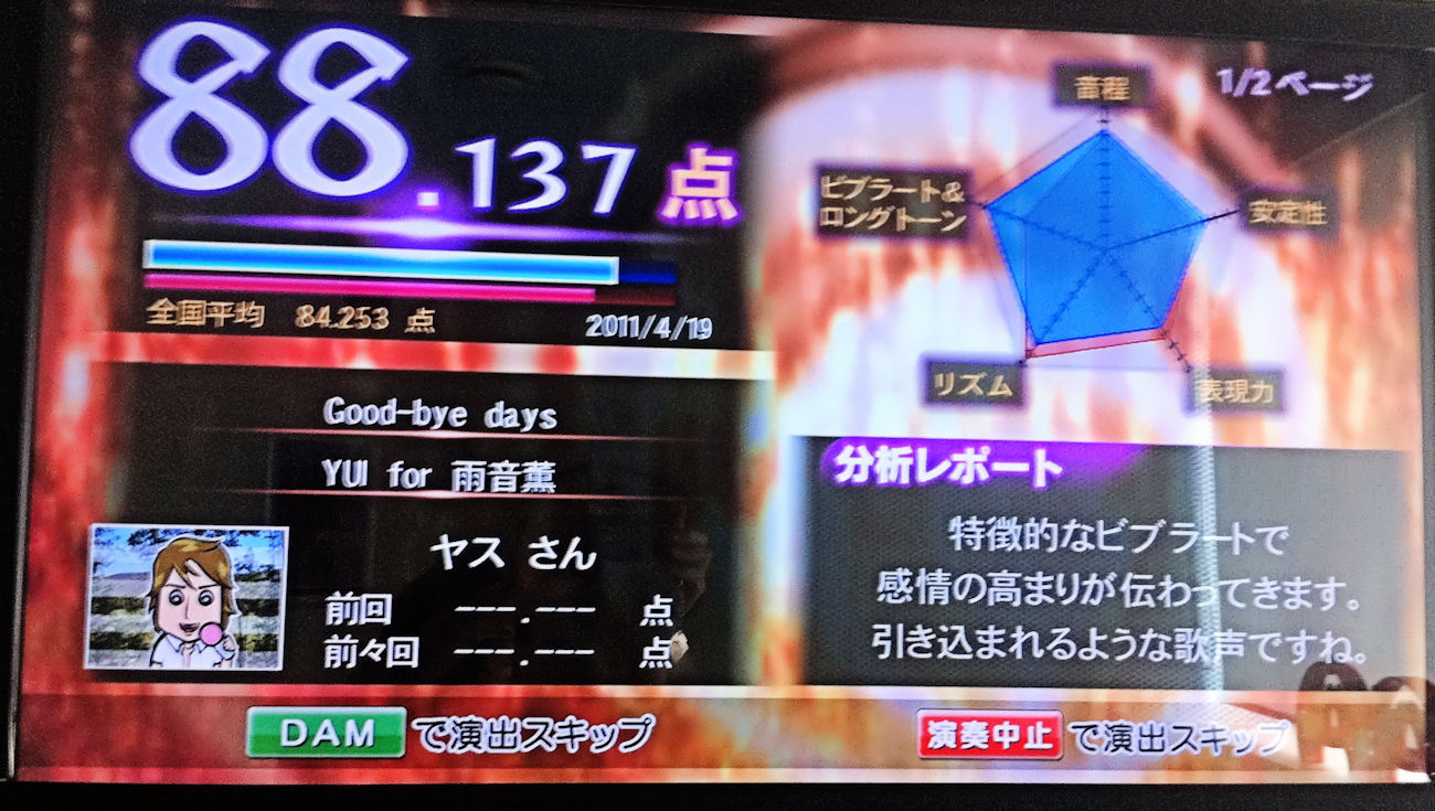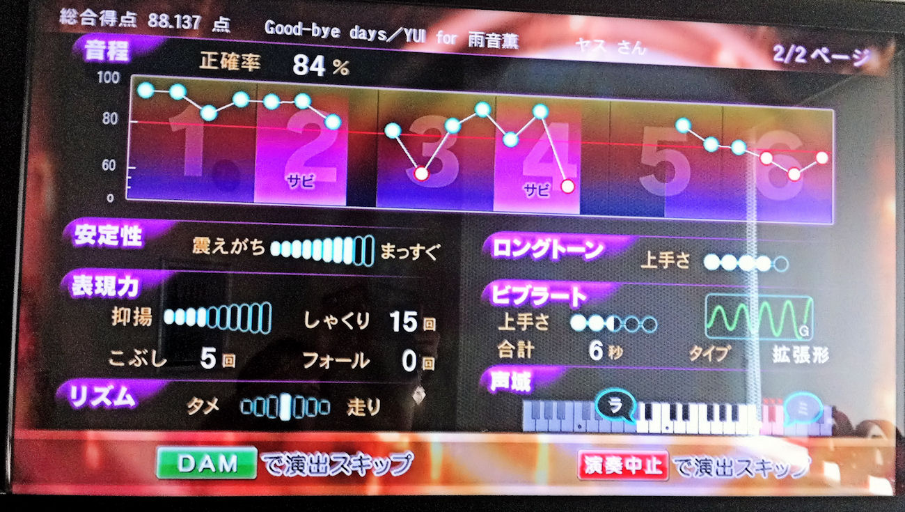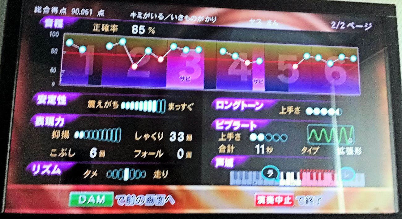 今週もカラオケ行きました。何と、今回のお部屋、精密採点IIが無いなぁ~とお店の人に問い合わせすると、最新の精密採点DXなるものが入っているとのことでチャレンジしてみました。